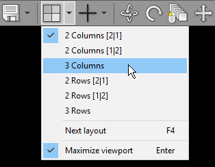 The default position of viewports in the 3D MPR window can be changed from the Viewport layout drop-down menu.
