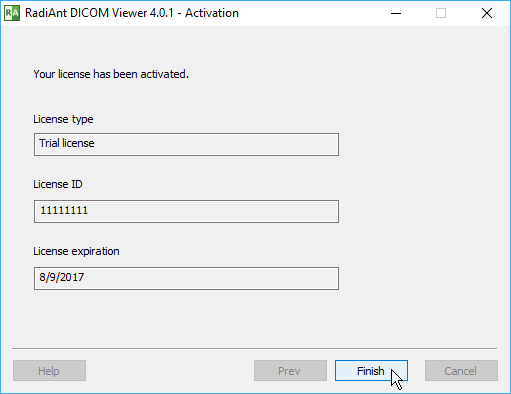 The steps below illustrate the process by which you can activate RadiAnt DICOM Viewer in the evaluation mode on computers that are connected to the Internet.